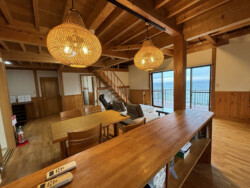 白涛海岸と名高い海岸線を見下ろす部屋からは、都会の喧噪を忘れさせてくれるだけでなく、日が暮れると美しい夕日が広がり、心を潤す瞬間がやってきます。 厳選された8名までの宿泊客が楽しめるこの宿泊施設では、食事の提供はありませんが、それがむしろ長期滞在者の自由を促進します。設備のしっかりと整ったキッチンと、心地良いお風呂が共有スペースとして設けられています。ここで自分たちだけの時を満喫し、四季折々の天草の美しさに触れることができます。