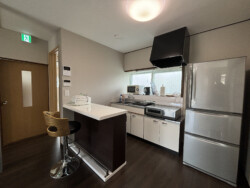 清潔感あふれるキッチンには、冷蔵庫、電子レンジなどの家電が揃っており、自炊も可能です。