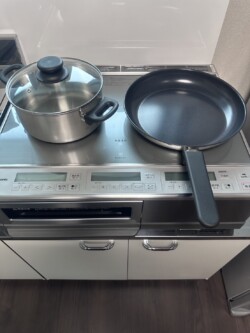 IHコンロ / 電子レンジ / ケトル / 炊飯器/ フライパン /両手鍋/ボウル/ まな板 / 包丁 /食器洗剤 / キッチンペーパー /コップ/お皿/ お箸・フォーク・スプーン