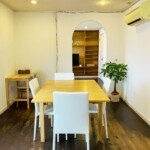 お部屋は1~4名様までご利用いただけます。ヴィンテージアパートメントを少しずつ手を加えながら、ナチュラルで居心地のいい空間にしました。リビングにある白木の棚は、10年の時を経て飴色になり、床の表面もツヤツヤに。