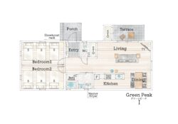 キッチン、リビング・ダイニング、浴室、トイレがあり、寝室が2部屋あります。隣に、同じく6人まで宿泊できる別棟がありますので、大人数でのご宿泊も可能です。