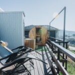 施設のある場所は閑静な住宅街で、目の前は熊本の自然を感じる景色が広がっています。さらにウッドデッキには4人用のバレルサウナと水風呂があり、サウナで汗を流したあとは、広い空の下、心地いい風を浴びながら、“ととのう”時間をお過ごしください。