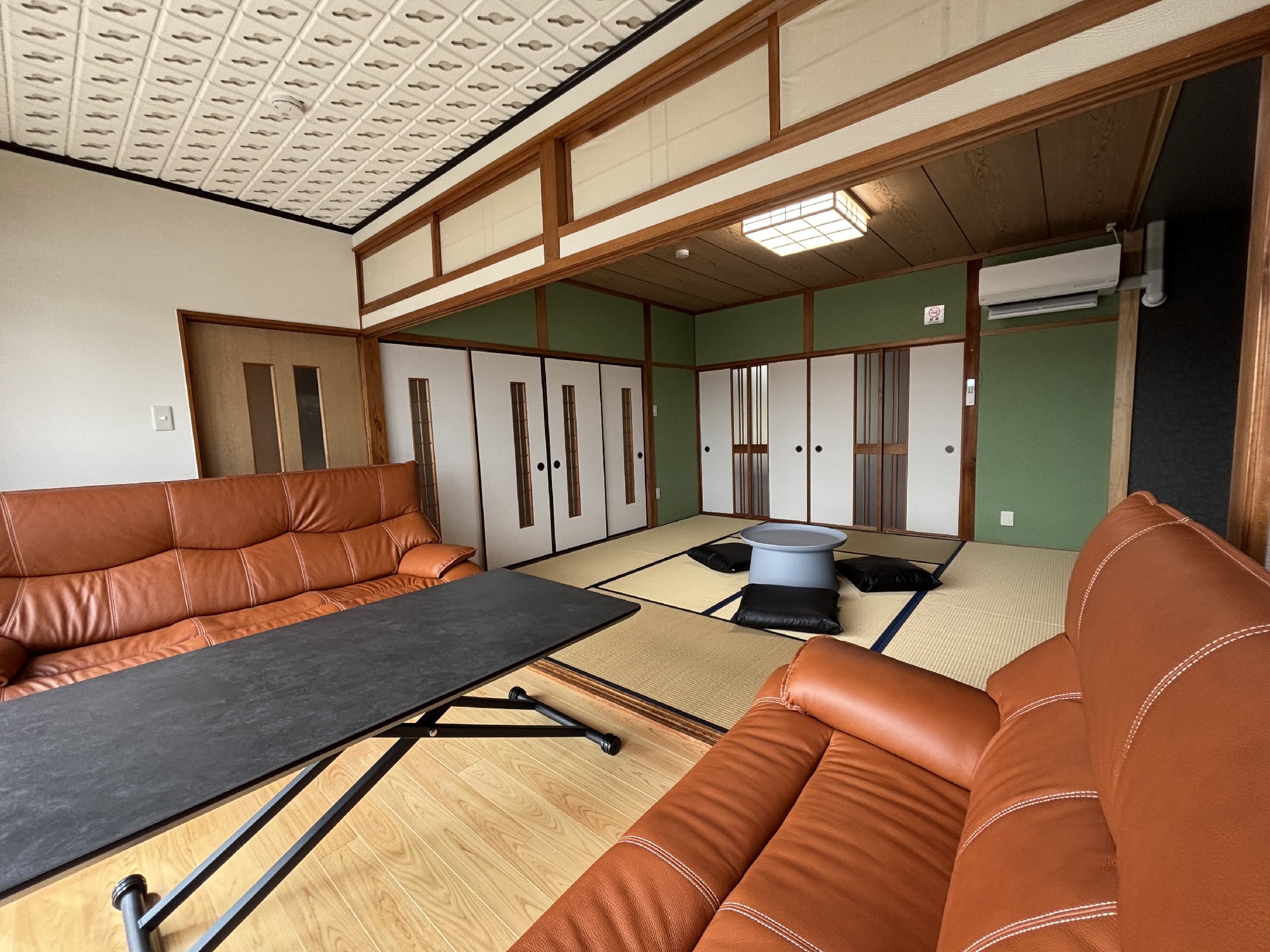 和を楽しむ畳リビングで、ゆっくり寛げます。 10人泊まれる市内の隠れ家