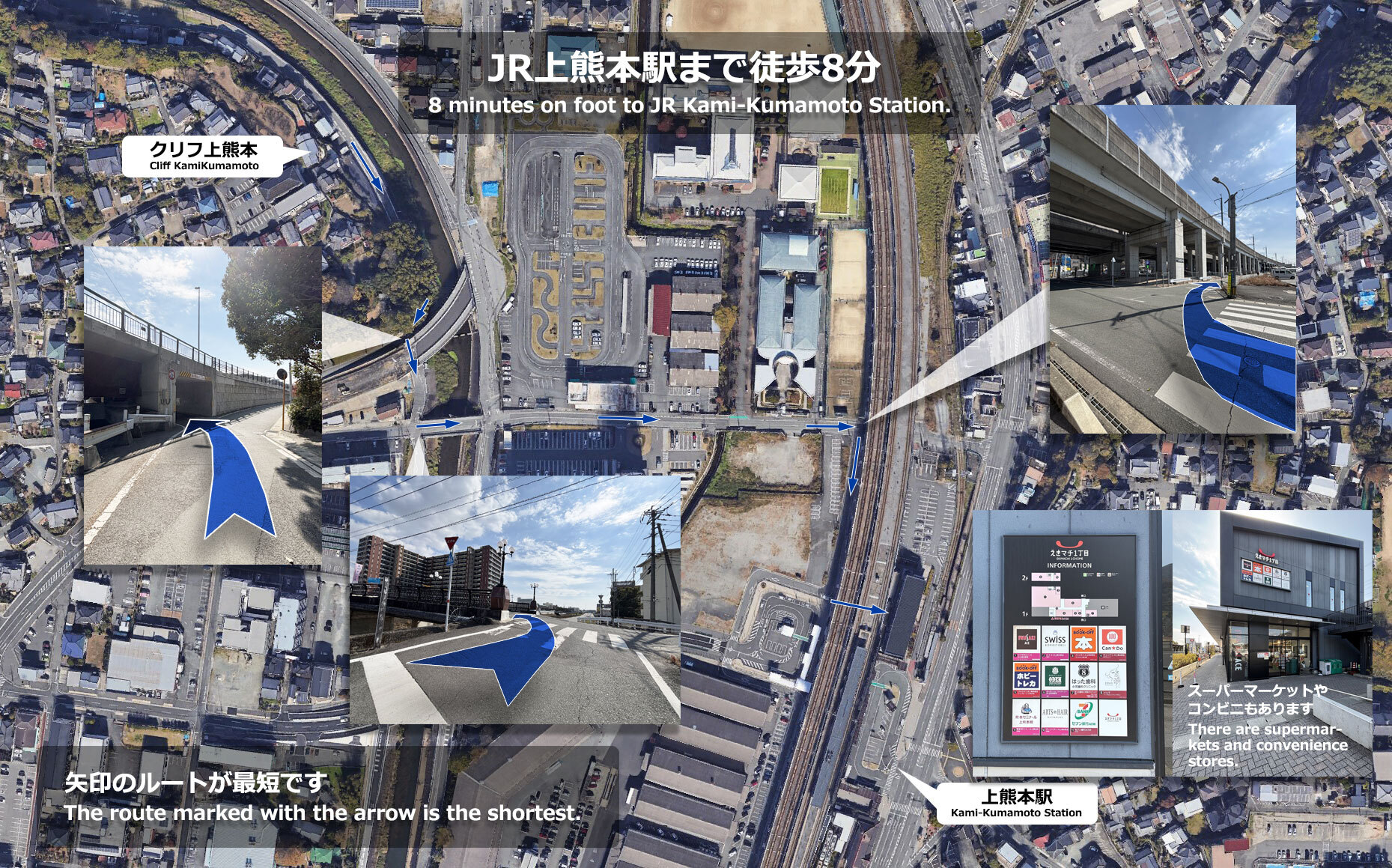 場所は熊本県熊本市西区花園5丁目40−33に位置しており、上熊本駅から歩いて8分程です。上熊本駅には、スーパーマーケットが有りますので、食材の購入も簡単です。
