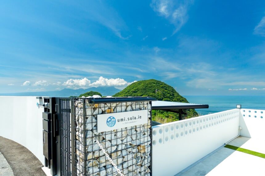 熊本県上天草市の別荘地「マリンパーク白涛」の最上部に、ひときわ目を引く真っ白な壁に囲まれた宿があります。その名も「UMI.SOLA.IE(うみそらいえ)」。まるで海外リゾートを思わせるようなモダンな空間と、目の前に広がる白涛海岸の絶景が、訪れる人に非日常の癒しを届けてくれます。