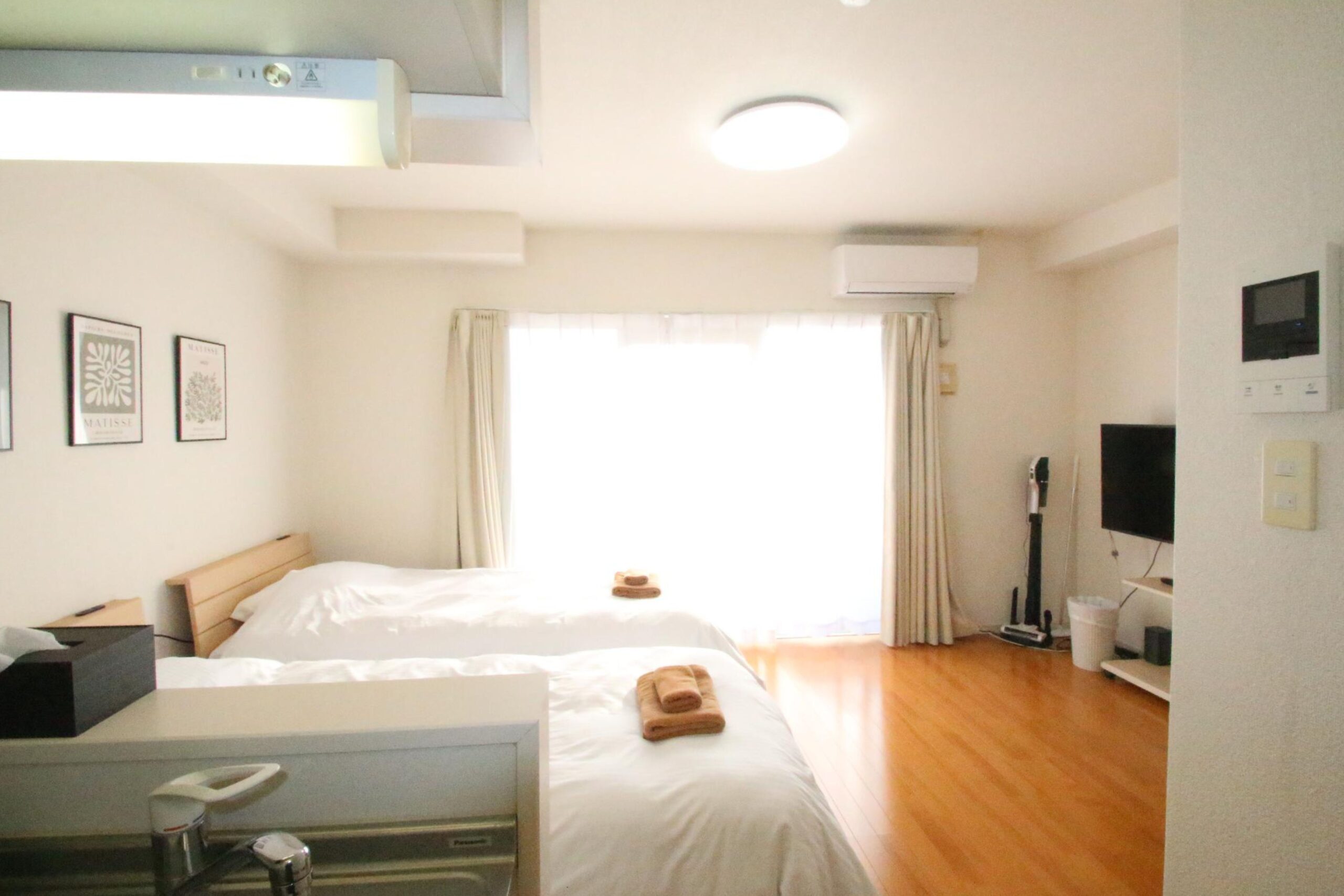 冷蔵庫や洗濯機も完備しており、長期滞在はもちろん、旅行の途中で洗濯や簡単な食事を済ませたい方にもぴったりです。