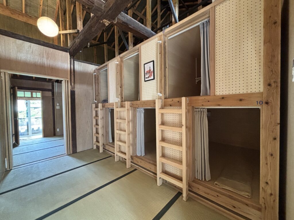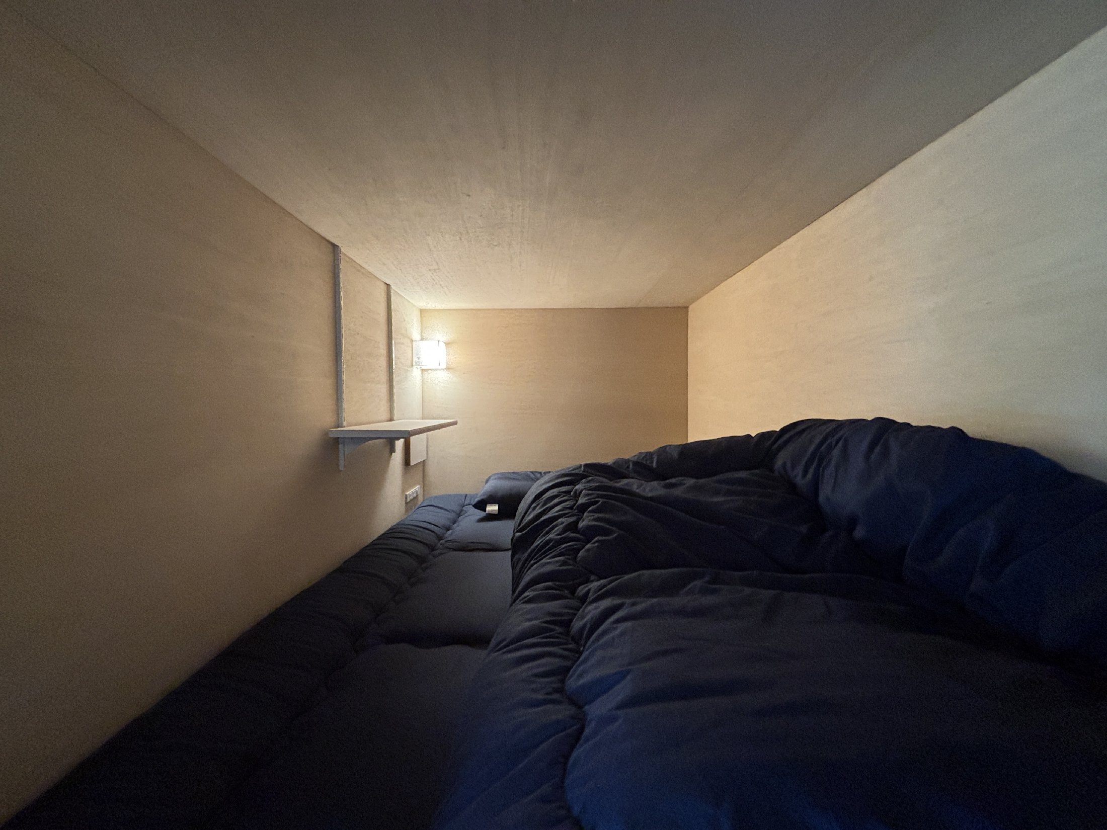 寝室はロフトの上下に分かれた半個室タイプのベッドスペース。