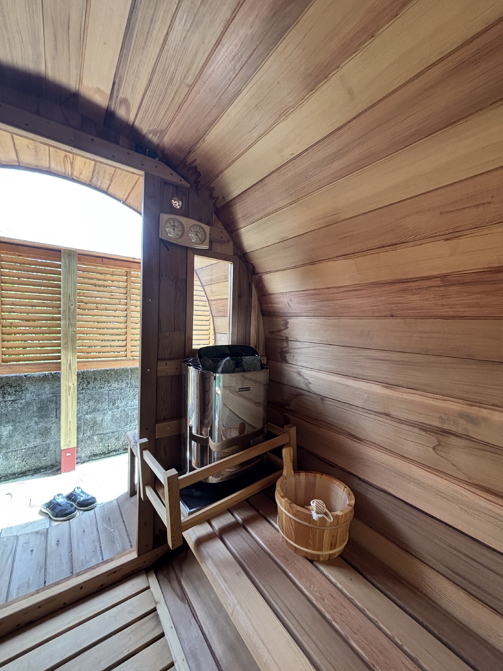 屋外には、サウナと水風呂があり、自然の空気の中で“ととのう”体験をしていただけます。