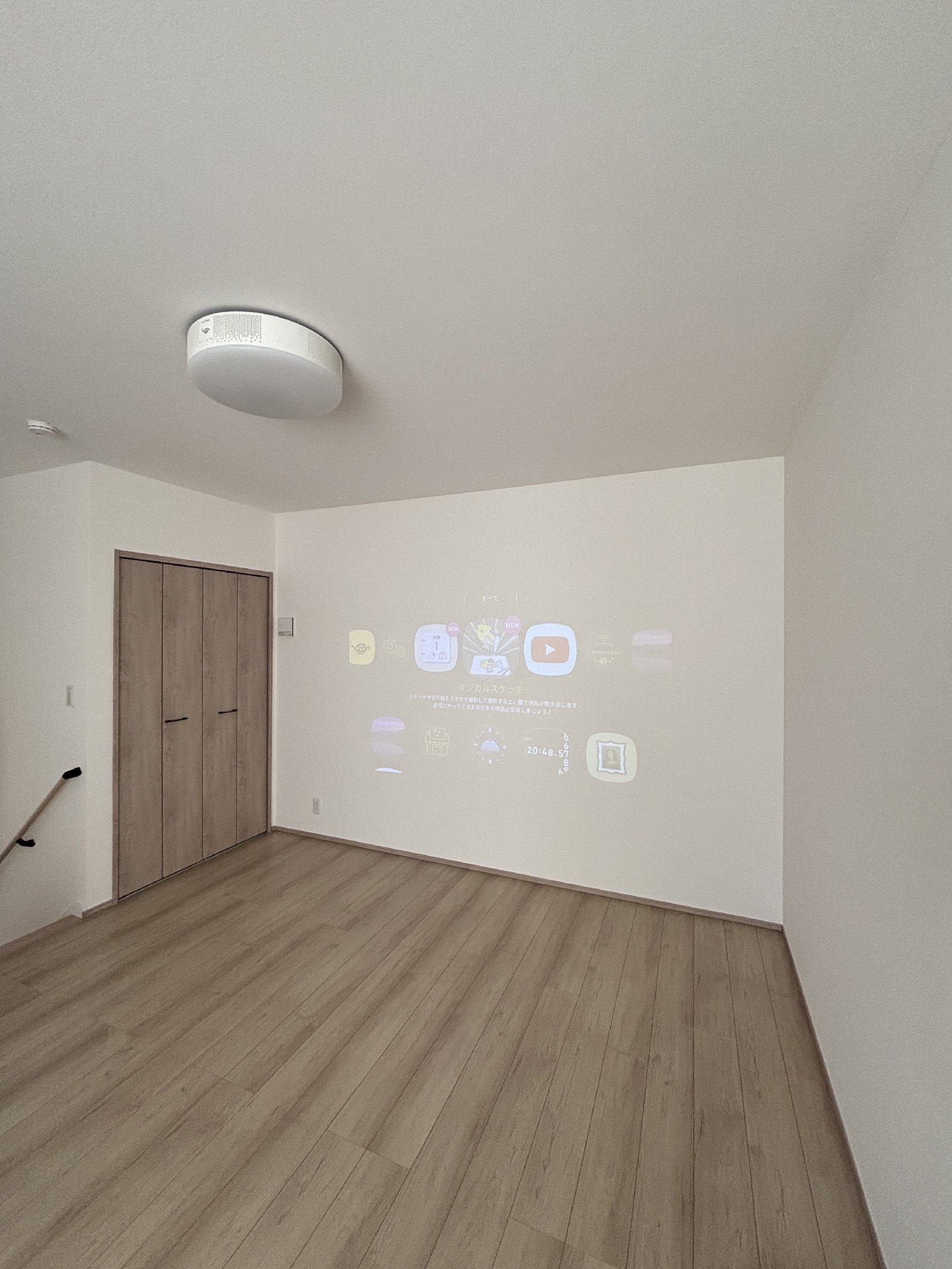 2Fのベッドルームには天井設置型のプロジェクターがあり、映画や動画を楽しみながら過ごすことができます。