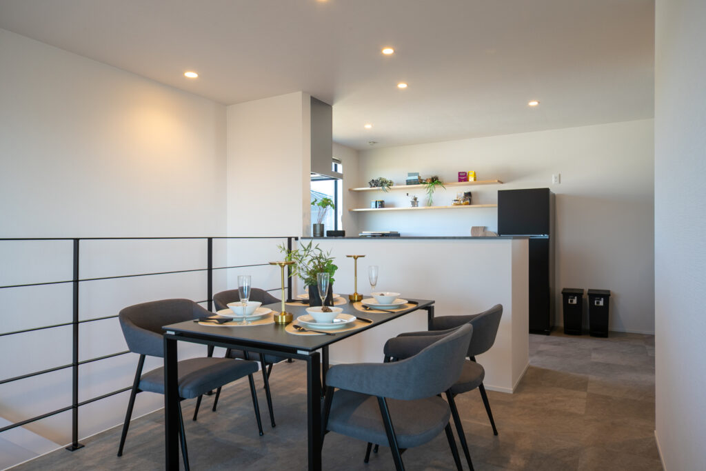 リビングは2階。洗練されたカウンターキッチンから出される料理はまさに星付き
