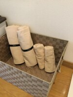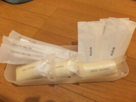 タオル / シーツ / 石鹸 / 使い捨て歯ブラシ /トイレットペーパー