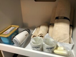 タオル / シーツ / 石鹸 / 使い捨て歯ブラシ /トイレットペーパー